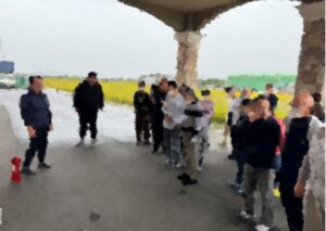 その後、職員の指示に従いながら一緒に安全な場所までゆっくりと避難。火災の可能性もある為消火器の使い方について、実際に手に持ってもらいながら説明を行いました。