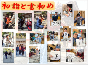 帰ってからは書初めをしました。今年一年の抱負や思いつく言葉などそれぞれ思いついたものを筆で書いてもらいました!